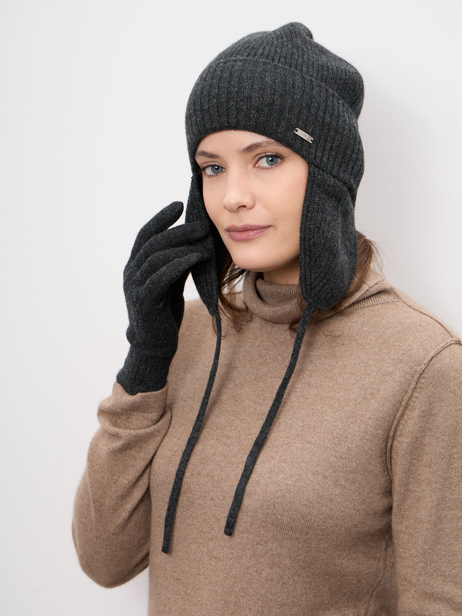 Элегантная шапка из натурального кашемира в универсальном графитовом оттенке. Лаконичный дизайн подчёркивает благородную фактуру материала и легко сочетается с классическими и повседневными образами. Модель дополнена удлинёнными ушками с завязками, которые обеспечивают дополнительное тепло и комфорт в холодную погоду.