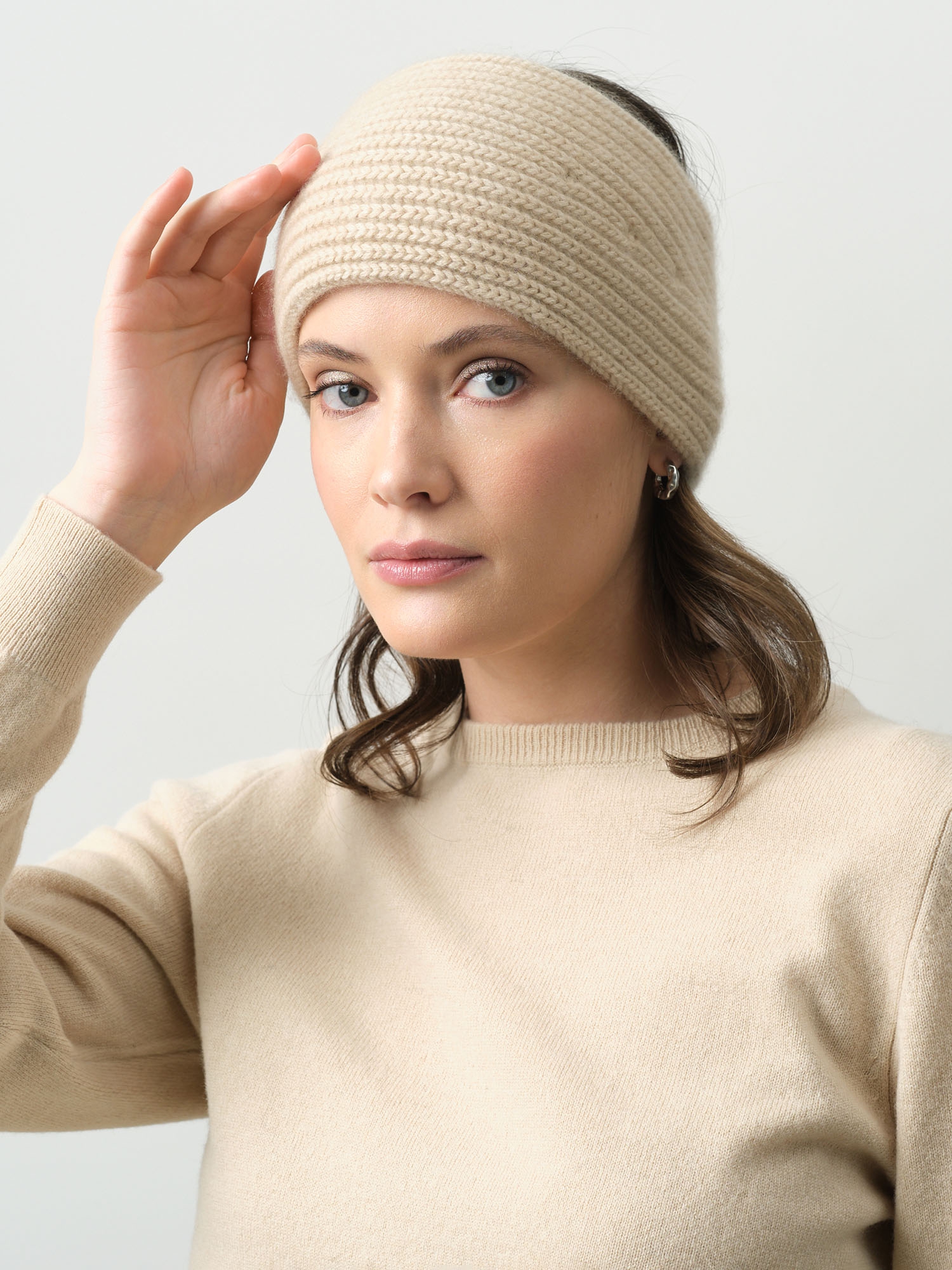 Повязка на голову из кашемира 11110 бежевая
