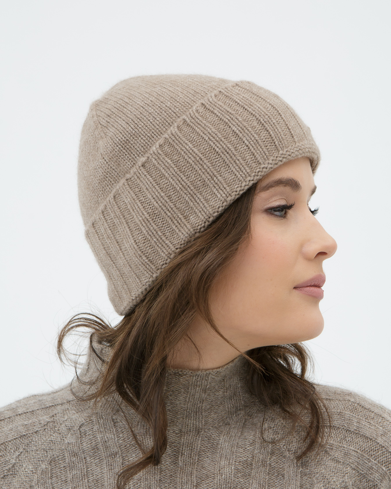 Классическая форма с аккуратной вязкой и подворотом создаёт универсальный, вневременной образ. Минималистичная металлическая плашка добавляет изделию аккуратный акцент и подчёркивает премиальность.