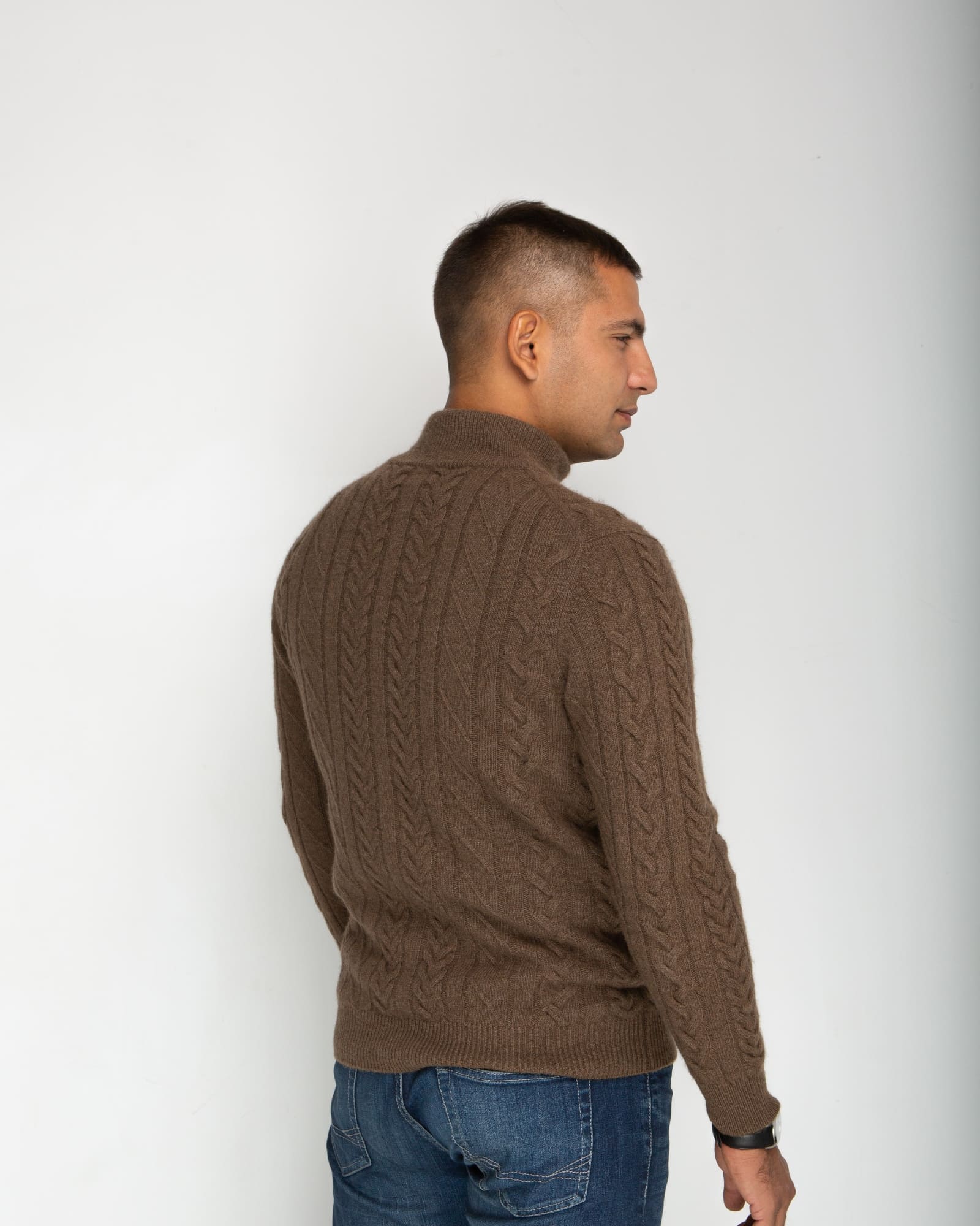Роскошный мужской джемпер из 100% натурального пуха яка в элегантном коричневом цвете с рельефным узором – идеальное решение для ценителей комфорта и стиля. Этот эксклюзивный материал, добываемый в высокогорных районах Монголии, обладает уникальными свойствами для повседневной носки.