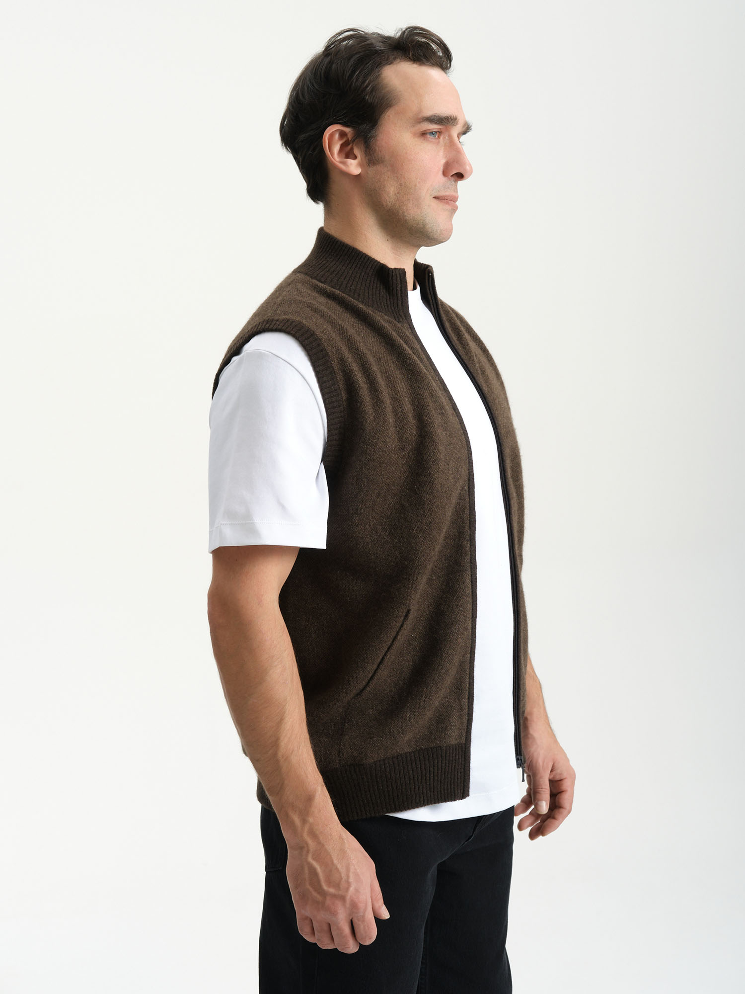 Премиальный мужской жилет из 100% натурального пуха яка с застежкой на молнии в классическом коричневом цвете – идеальное решение для ценителей натуральных материалов и комфорта. Этот стильный предмет гардероба станет незаменимым для тех, кто предпочитает сочетать практичность, тепло и элегантность.