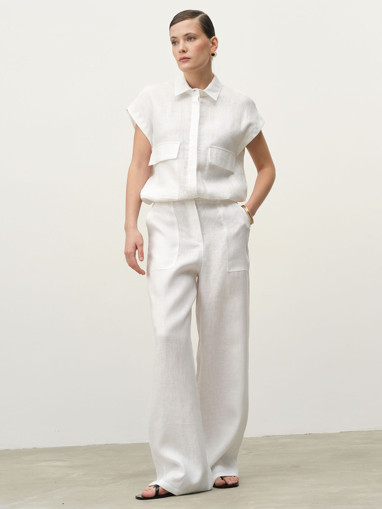 100% лён — натуральный, дышащий материал с лёгкой текстурой. Обеспечивает комфорт в жаркую погоду и приятен к телу.