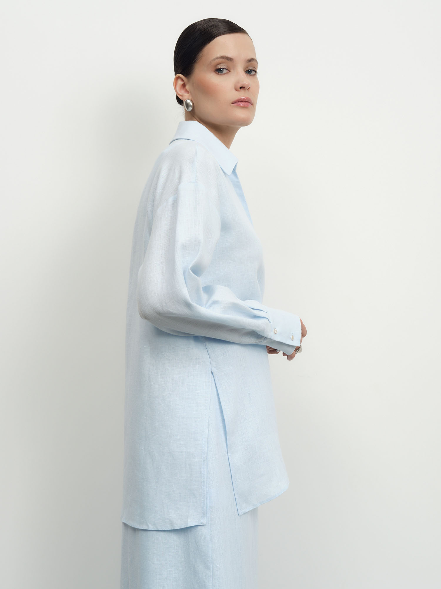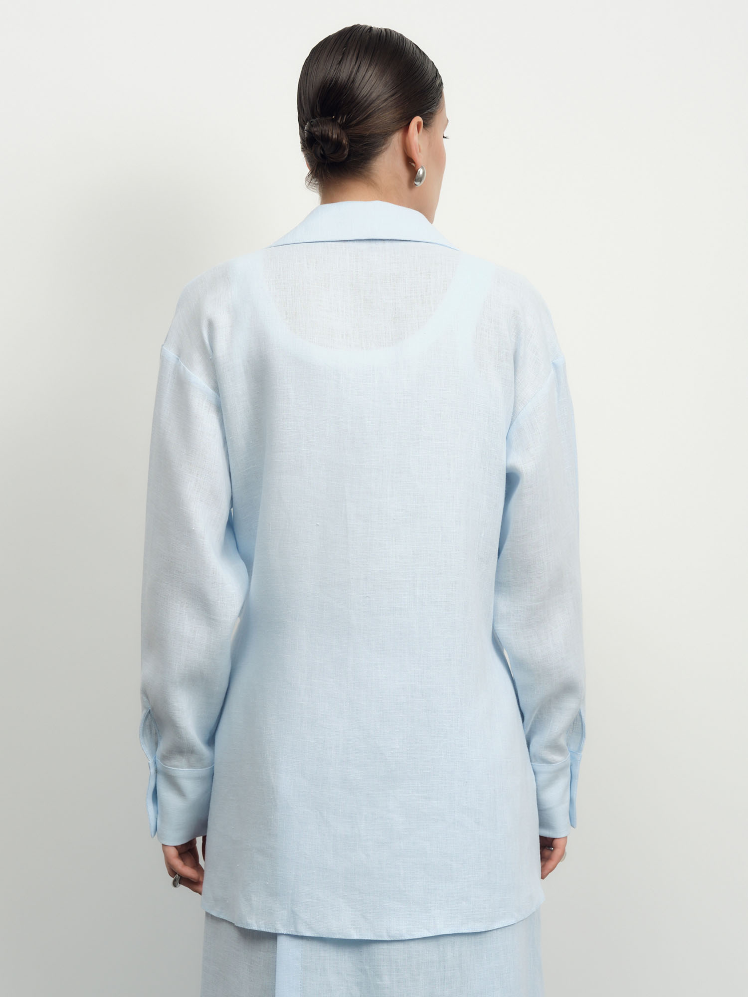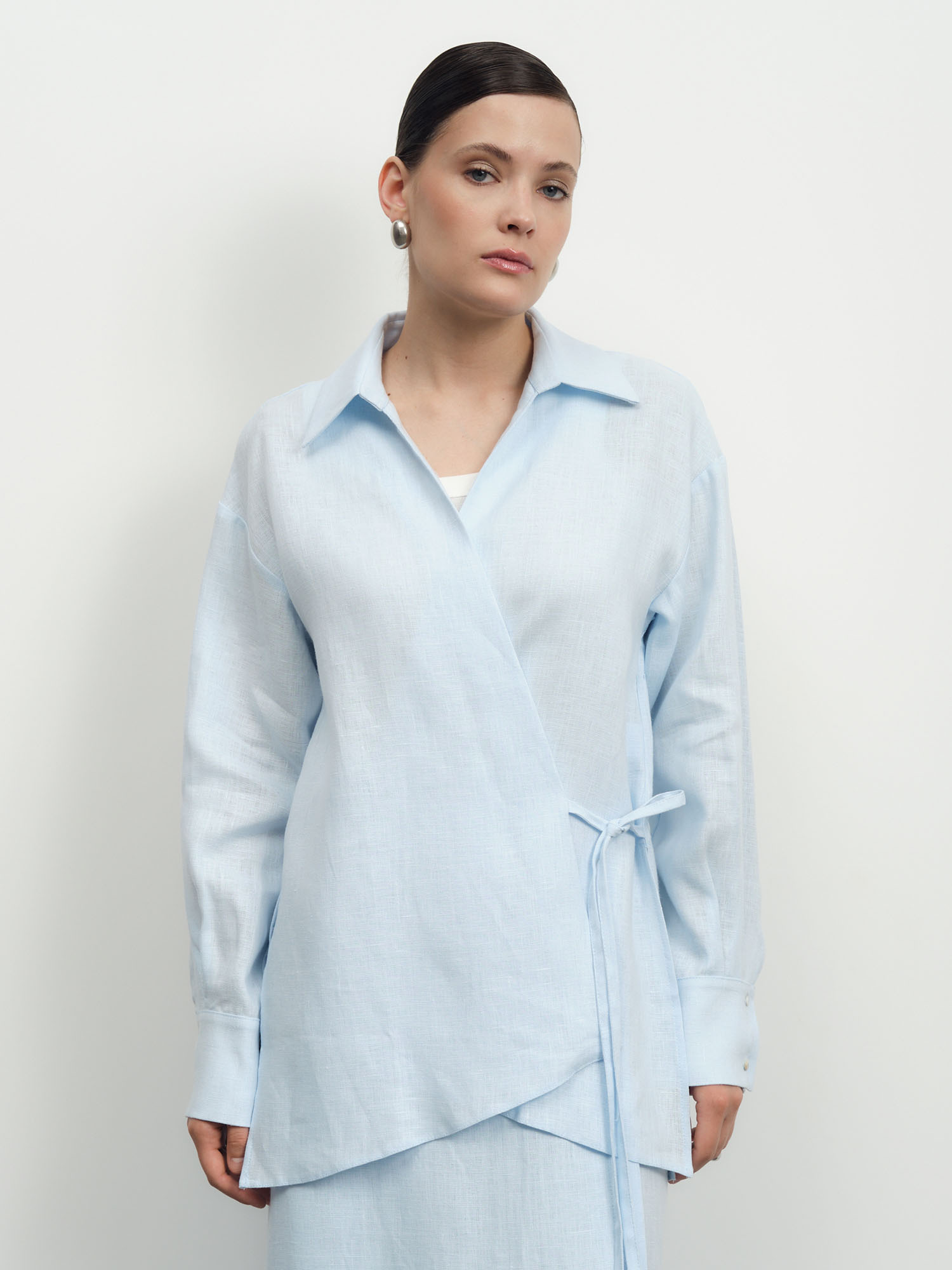 Льняная рубашка — легкая и элегантная модель с современным асимметричным кроем, идеально подходящая для теплого сезона и создания свежих образов.