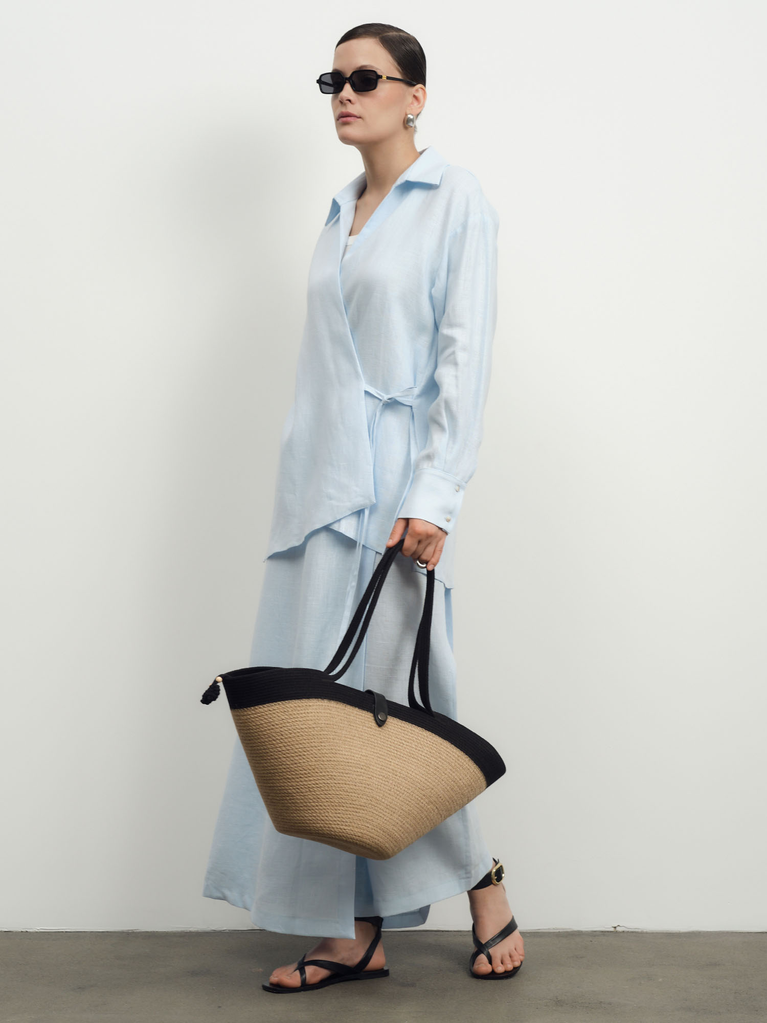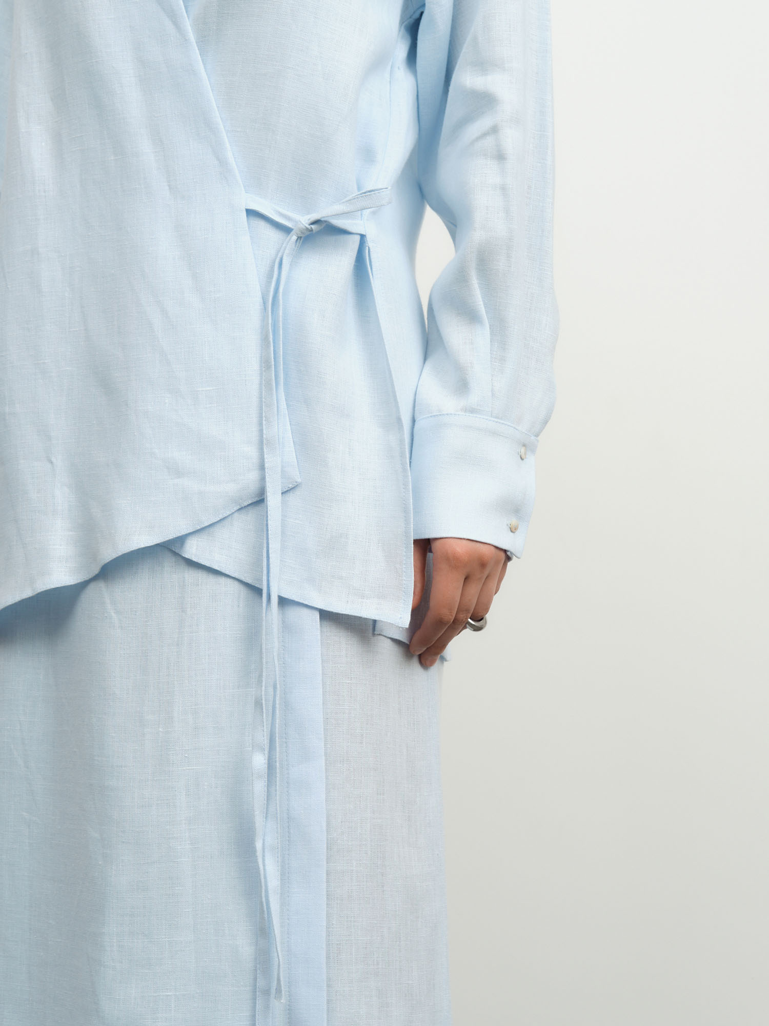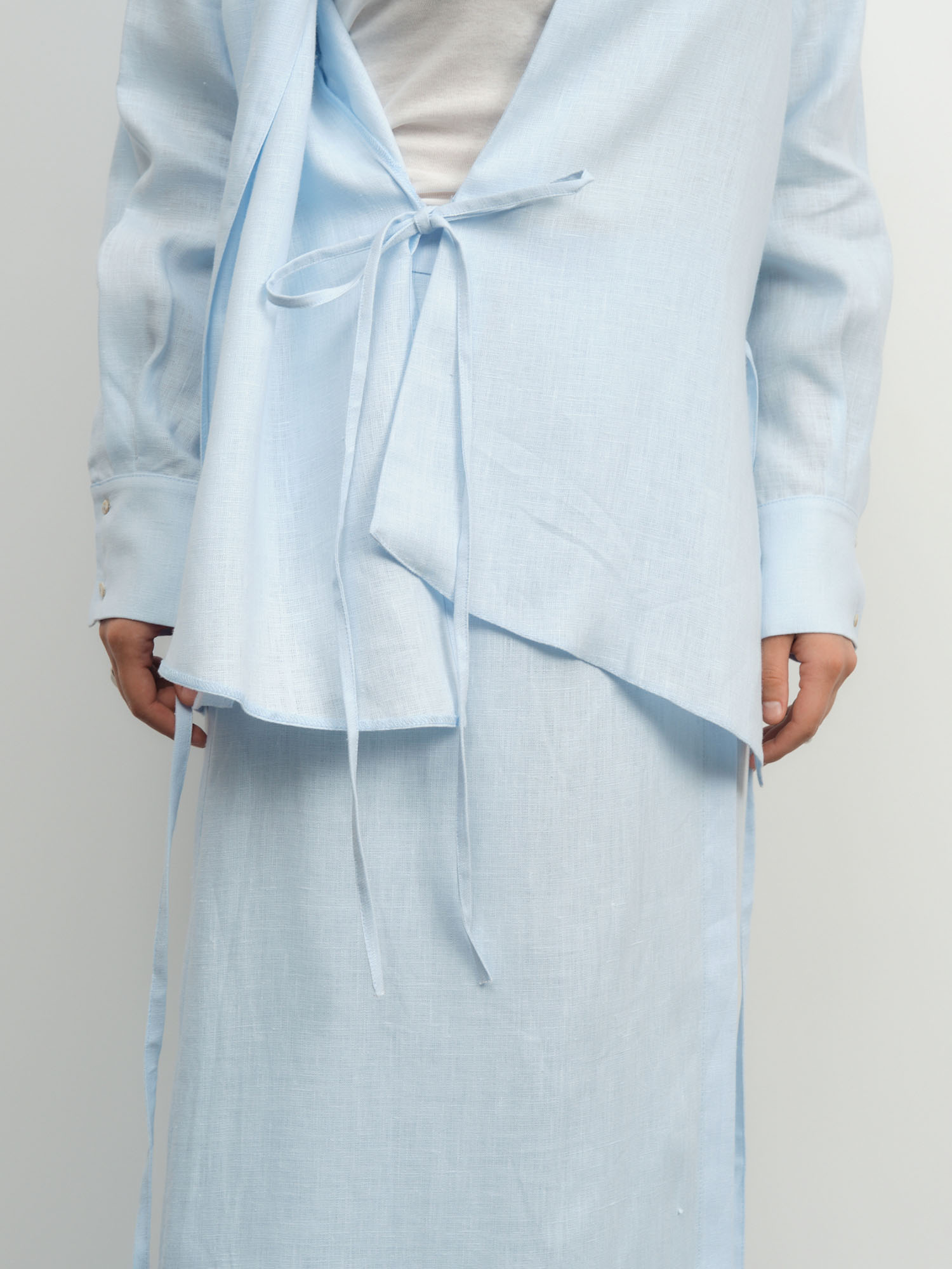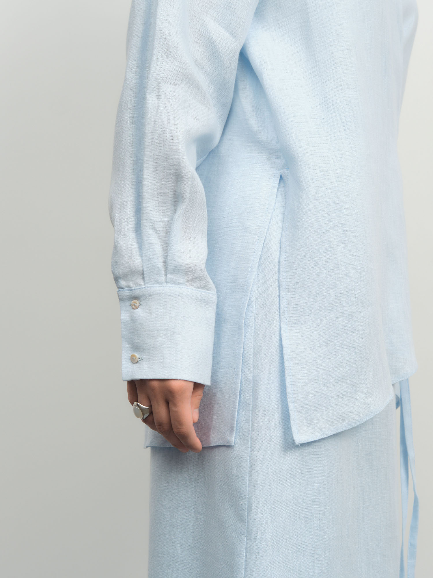 Льняная рубашка — легкая и элегантная модель с современным асимметричным кроем, идеально подходящая для теплого сезона и создания свежих образов.