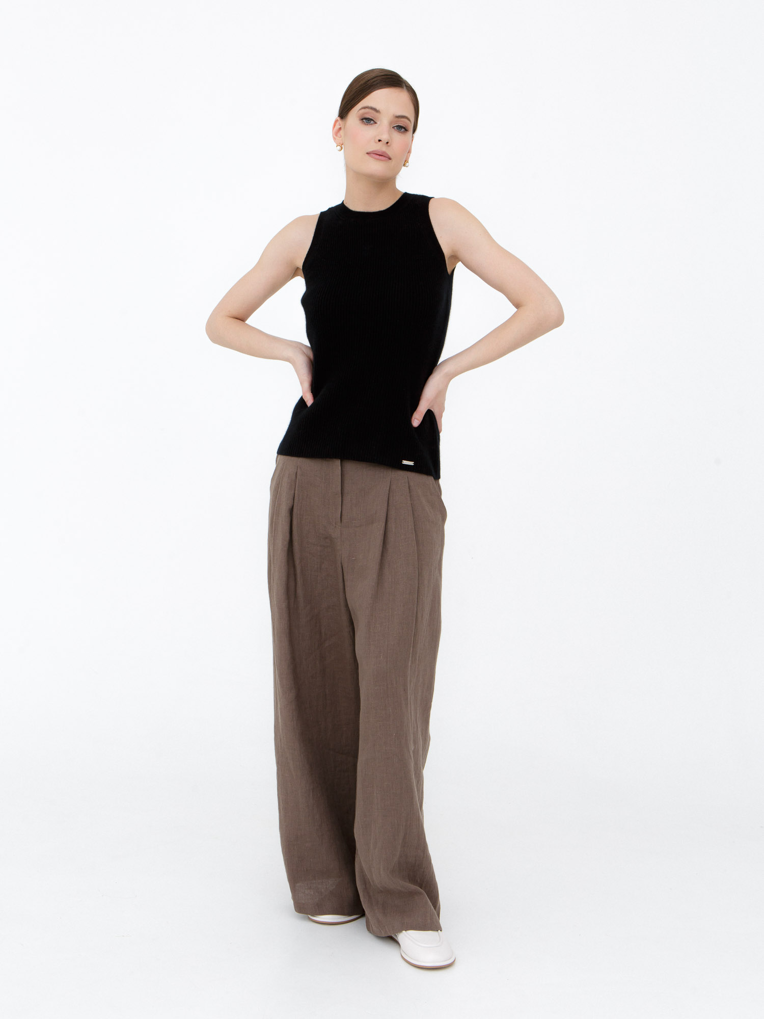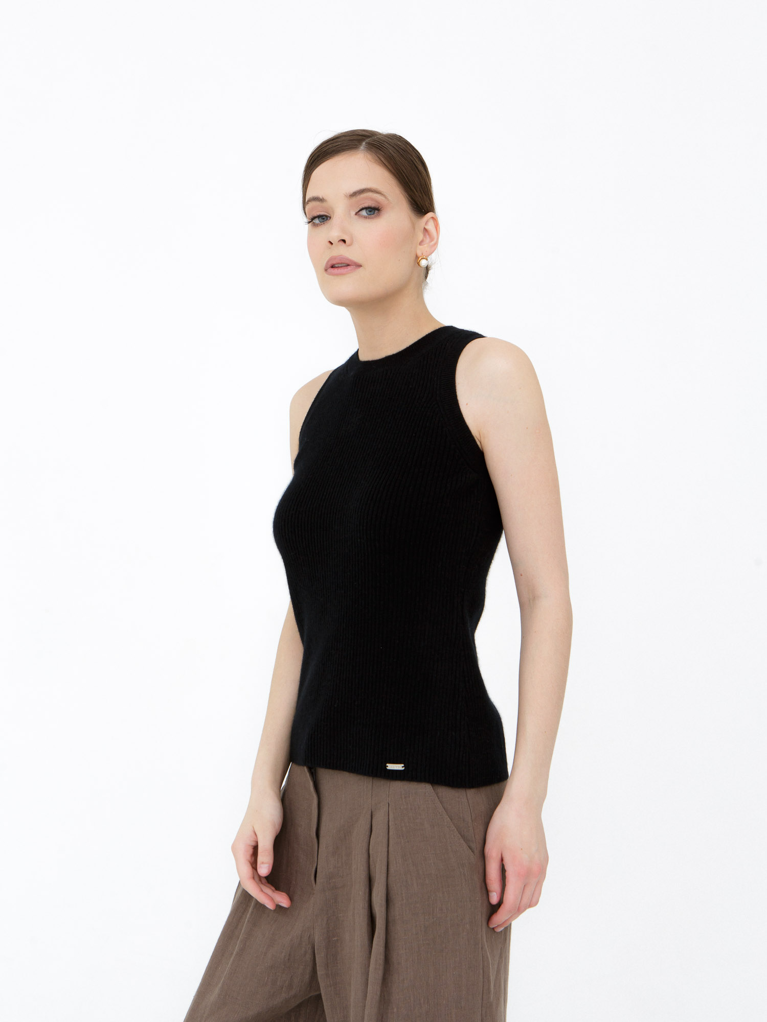 Модель выполнена в лаконичном стиле без рукавов с аккуратной круглой горловиной. Чистые линии кроя подчёркивают современную эстетику изделия и делают его универсальным элементом гардероба. Низ и проймы аккуратно оформлены эластичной вязкой, которая помогает сохранять форму.