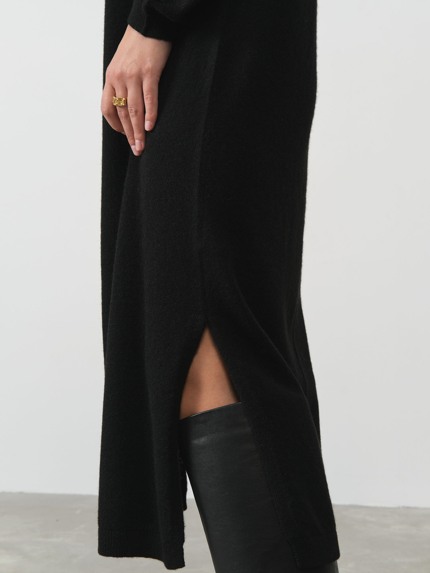 Боковые разрезы по низу обеспечивают свободу движений и добавляют динамику силуэту. Аккуратная трикотажная вязка и обработка краёв подчёркивают качество изделия.